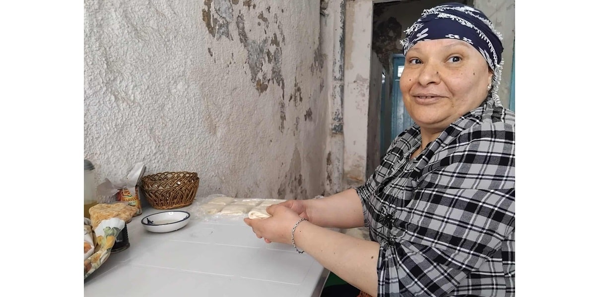 Dans le vestibule de sa maison de la médina de Tunis, Malika profite du courant d’air. Plongée dans la préparation de la pâte qui servira à confectionner des pains mlaoui, elle ne voit pas les heures passer.
