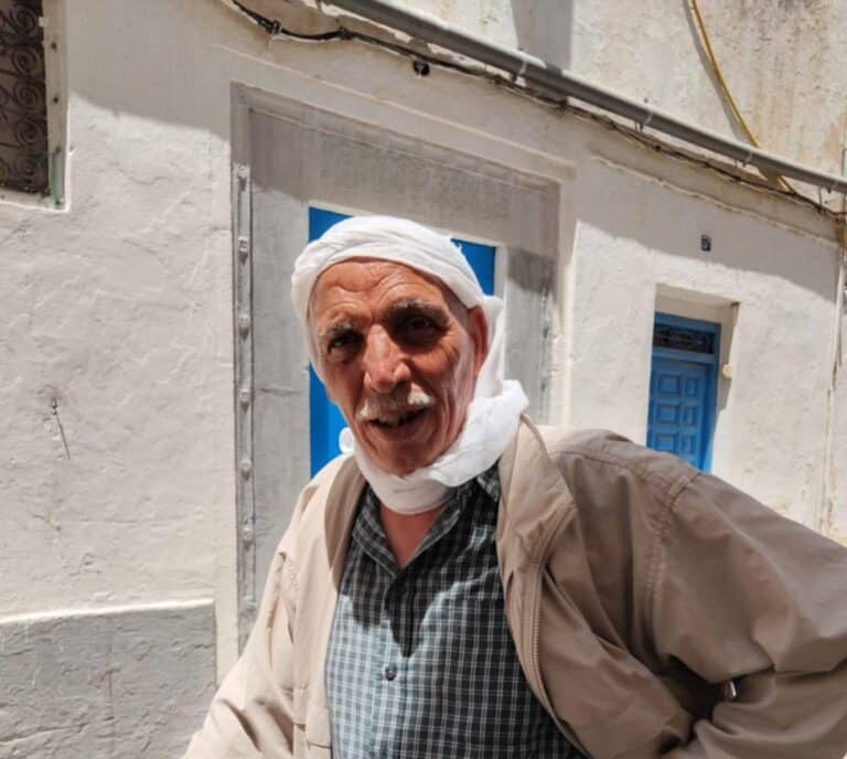 Toujours gai, il récite des poèmes à qui veut bien l’entendre et sait parler chiffons avec les dames du quartier. Sa poussette devant lui, il rayonne entre Bab Souika et Halfaouine, rêve des montagnes de Bargou et des terroirs de Siliana.