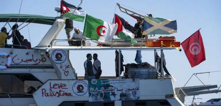 La flottille, composée de plusieurs bateaux venus de différents pays, tente d’atteindre Gaza afin de dénoncer le blocus imposé à l’enclave palestinienne.