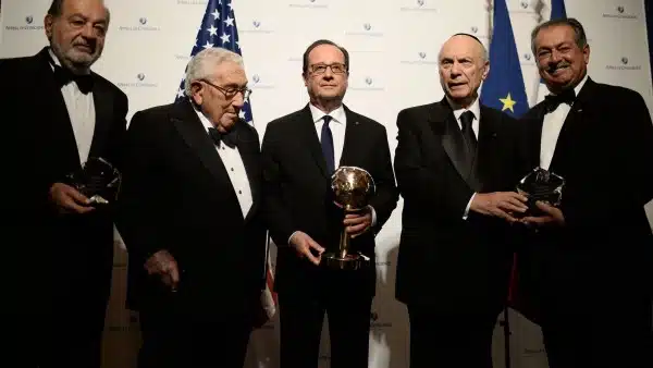François Hollande a reçu, des mains du politologue et prix Nobel de la paix Henry Kissinger, le « prix de l’homme d’Etat » de l’année 2016, à New York. Un prix qui lui était remis par la fondation new-yorkaise interconfessionnelle « The Appeal of Conscience ». Le même prix avait été attribué à Nicolas Sarkozy en 2008.