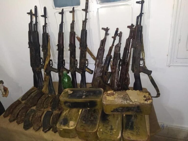 Il s’agit notamment de 11 fusils d’assauts Kalachnikov, 14 chargeurs et 4400 cartouches de calibre 7.62 mm ont été saisis lors de l’opération.