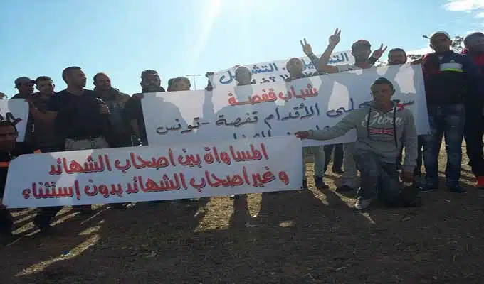 Après plus de 8 jours de marche, cinquante-sept jeunes chômeurs, originaires de Gafsa, sont arrivés à Tunis après avoir parcouru les 400 km qui séparent Gafsa de Tunis à pied, pour réclamer des emplois.