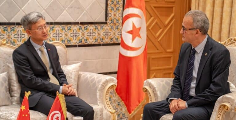 M. Mohamed Ben Ayed, secrétaire d’État auprès du ministre des Affaires étrangères, a rencontré, jeudi 11 septembre, S.E.M. Wan Li, ambassadeur de Chine en Tunisie. La discussion a porté sur le renforcement du cadre juridique et institutionnel pour faciliter l’accès des produits tunisiens au marché chinois, en tenant compte des obstacles du côté chinois et des limitations internes tunisiennes.