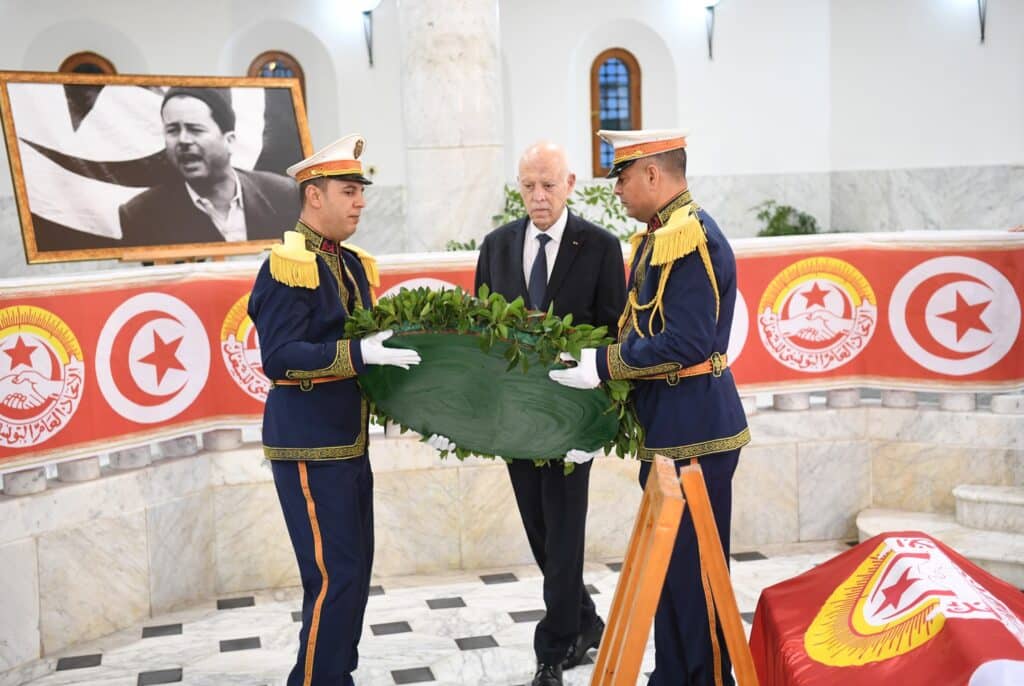 En hommage au leader syndical Farhat Hached, le président Kaïs Saïed s’est rendu au mausolée du martyr avant d’enchaîner une série de visites et de déclarations à Tunis. Entre mémoire nationale, avertissements politiques et échanges directs avec les citoyens, le chef de l’État a livré une journée marquée par le rappel de la lutte, de la justice et des institutions.
