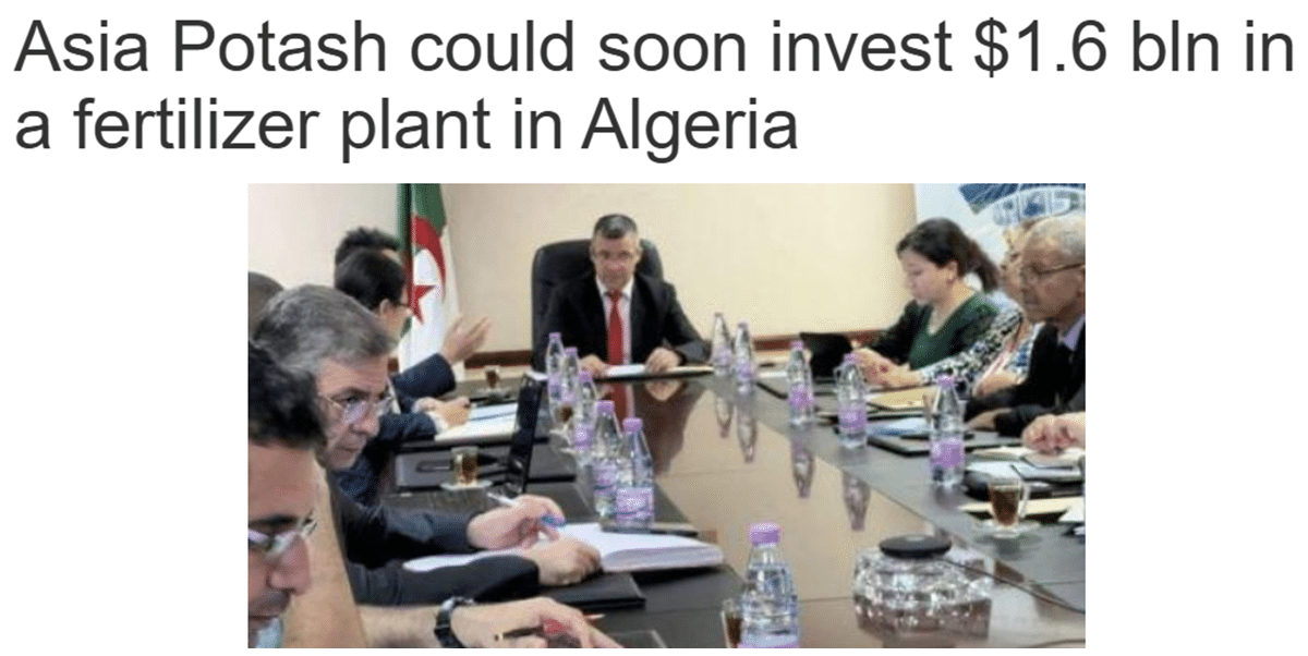 Selon un post publié sur sa page Facebook par Houssem Saad, membre de l’association Alert, le groupe chinois Asia Potash International Investment a finalement choisi l’Algérie pour développer un complexe industriel intégré d’un montant de 1,6 milliard de dollars, destiné à exploiter des phosphates et produire de l’ammoniac, de l’urée et des engrais composés.