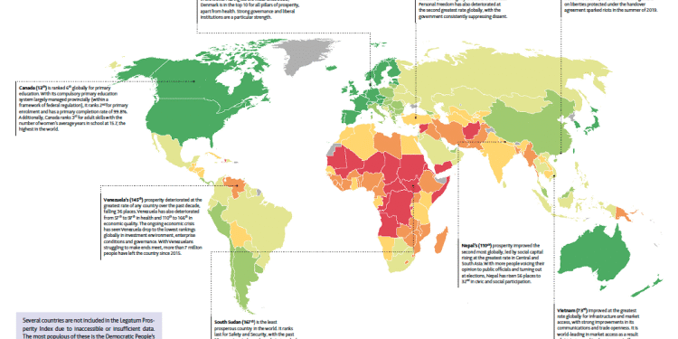La Tunisie a hĂ©ritĂ© de la 99Ăšme position sur 167 dans le Legatum Prosperity Index 2023. Cet indice international mesure la prospĂ©ritĂ© des pays Ă travers plusieurs critĂšres tels que la croissance Ă©conomique, le niveau de l’Ă©ducation, la santĂ©, le bien-ĂȘtre et la qualitĂ© de vie des citoyens.