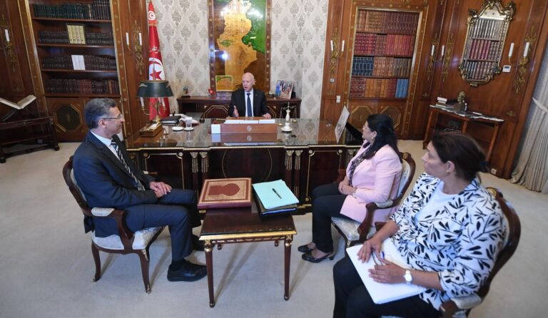 Lors d’un entretien tenu, lundi 8 août, au Palais de Carthage, avec les ministres de l’Intérieur, Taoufik Charfeddine et des Finances, Sihem Boughdiri Nemsia et la Directrice Générale des douanes, Najet Jaouadi, le président de la République, Kais Saïed, a évoqué un certain nombre de dossiers liés aux moyens de lutter contre les crimes douaniers dans les plus brefs délais.