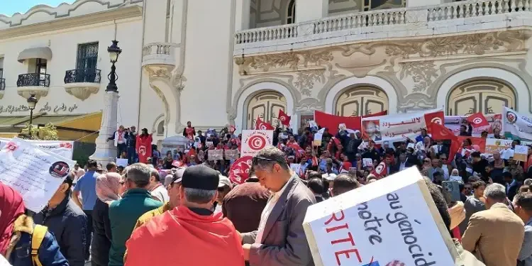 Les manifestants ont brandi des slogans appelant au respect de la souveraineté nationale et rejetant toute ingérence étrangère dans les affaires tunisiennes, en référence à certaines récentes déclarations européennes portant sur les jugements rendus dans ce qui est médiatiquement connu comme l’affaire du « complot contre la sûreté de l’État ».