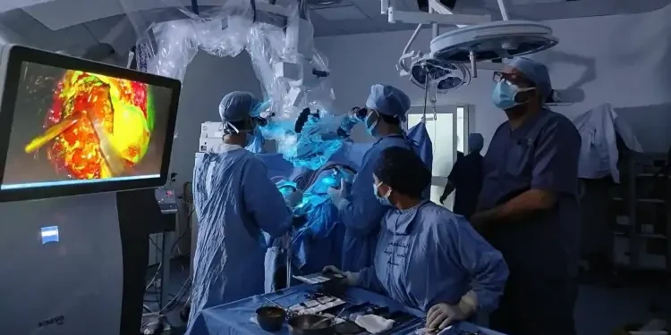 Pour la première fois, la chirurgie a été réalisée en combinant un microscope de haute précision et la technique de la fluorescéine, permettant une visualisation optimale des contours de la tumeur.