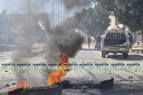 D’après la radio locale, des jeunes extrémistes, de la cité Ennour, à El Menchia, ont attaqué le poste de police avec des jets de pierres. Les forces de l’ordre ont riposté par du gaz lacrymogène. La radio rapporte, aussi, d’après une source policière, que les protestataires ont incendié des pneus pour fermer la route du stade Hamda Laouani.