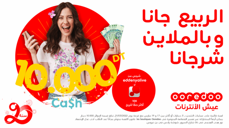 10.000 DT CASH à gagner à l’occasion des vacances de printemps avec Ooredoo !