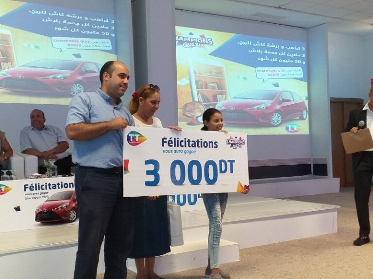Ce jeu est simple et culturellement enrichissant pour les abonnés de Tunisie Telecom. Mais il est aussi très enrichissant financièrement puisqu’il permet de gagner 3000 DT chaque semaine et 50 mille dinars cash chaque mois ainsi qu’une Toyota Yaris chaque mois.