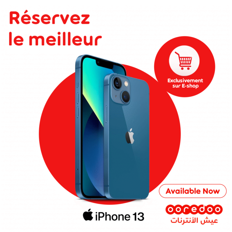 Ooredoo a le plaisir d’annoncer l’ouverture des précommandes du nouveau iPhone 13 via la boutique en ligne http://ore.do/iphone13. Du 8 au 14 décembre 2021, les iPhone 13, 13 Pro et 13 Pro Max sont disponibles en précommande pour une livraison ultérieure.
