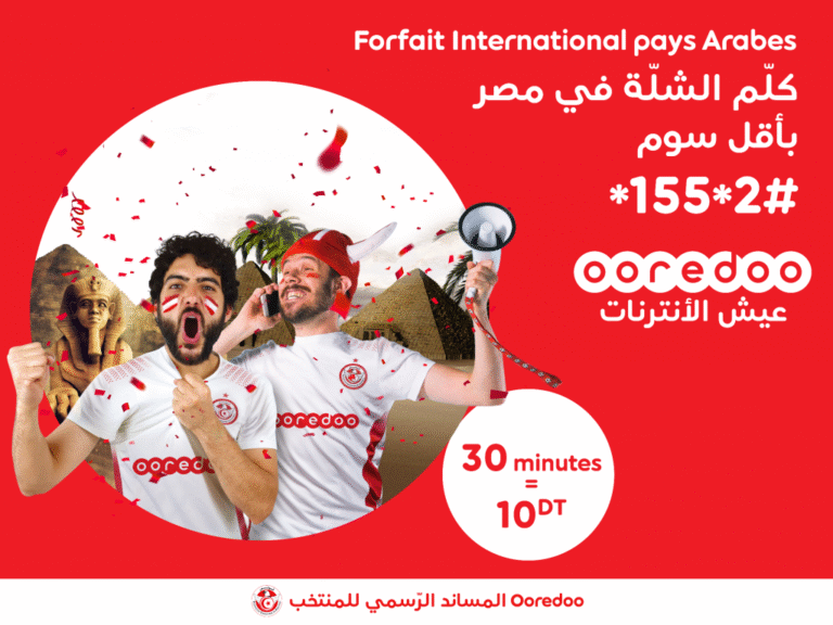 Etant sponsor officiel de l’équipe nationale, Ooredoo lance le forfait International « Pays Arabes » permettant ainsi à ses abonnés de vivre l’ambiance des matchs des Aigles de Carthage et de communiquer depuis la Tunisie vers l’Egypte à moindre coût.