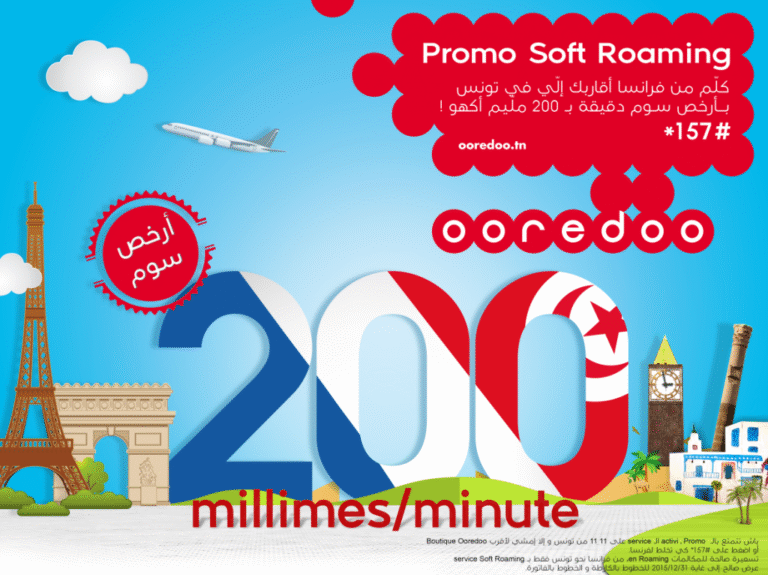 L’offre « Soft Roaming» permet déjà de bénéficier d’une remise pouvant atteindre les 85% sur tous les appels en Roaming en s’y inscrivant gratuitement. Il suffit d’appeler le 1111, ou se rendre à la Boutique Ooredoo ou à partir de l’étranger en roaming via *157#.