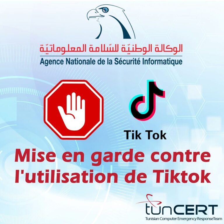 Dans un communiqué rendu public hier mercredi 15 avril, l’Agence Nationale de la Sécurité Informatique (ANSI ) a appelé les internautes tunisiens à suspendre leur utilisation de l’application Tiktok en raison d’une faille de sécurité.