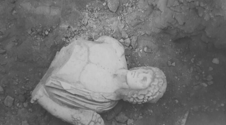 C’est le 27 juillet 1995 que l’équipe de terrassement (qui travaillait sur les fondations des structures d’accueil de l’Acropolium) a découvert des vestiges d’époque romaine. Sans le savoir, les terrassiers venaient de découvrir un temple. Et dans les soubassements de l’abside de ce temple, ils allaient découvrir un buste en marbre dont un bras tient une corne d’abondance.
